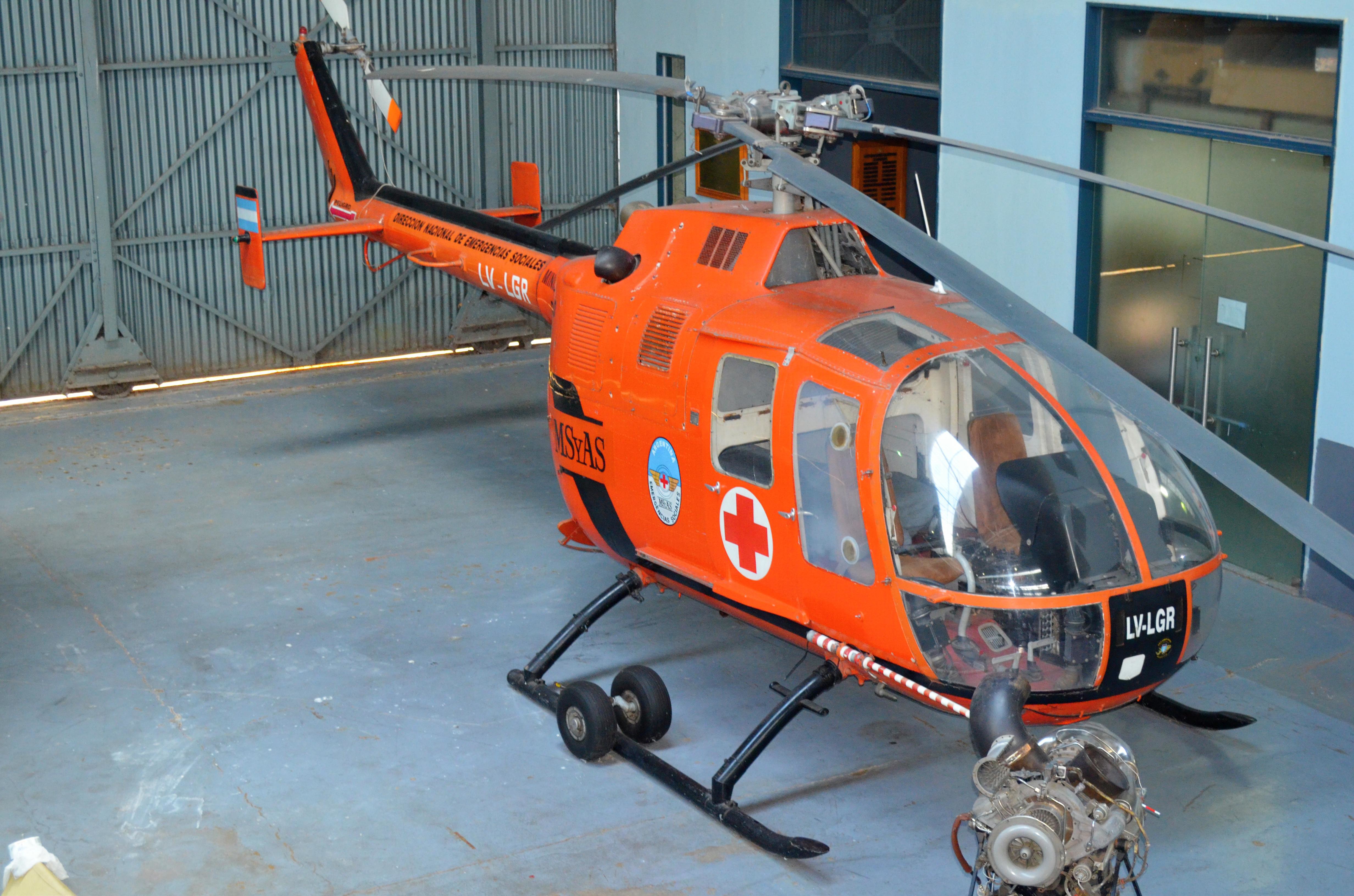 * cn. S-53 Messerschmitt-Bölkow-Blohm MBB Bo.105A – D-HDBD Messerschmitt-Bölkow-Blohm, LV-LGR Ministerio de Salud – Dirección de Emergencias Sanitarias – Bienestar Social. rr. AE-704 (operando con el Escuadrón Fénix – 1982); LV-LGR Ministerio de Bienestar Social. 2004 almacenado en Helipuerto Dr. Escudero (Salguero). Preservado en el Museo Nacional de Aeronáutica, 17Dic2011.